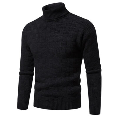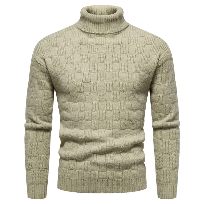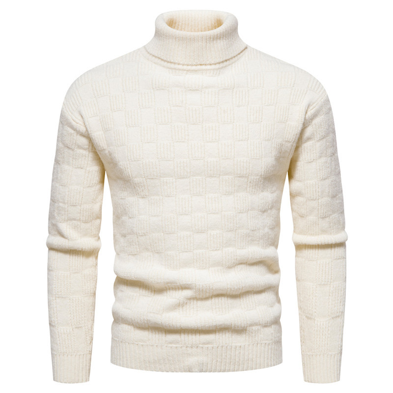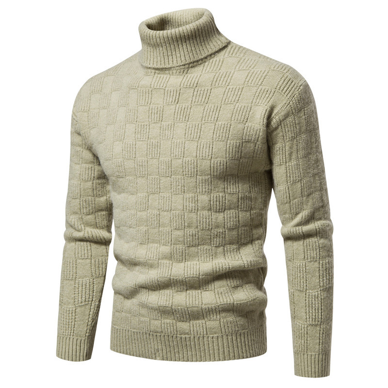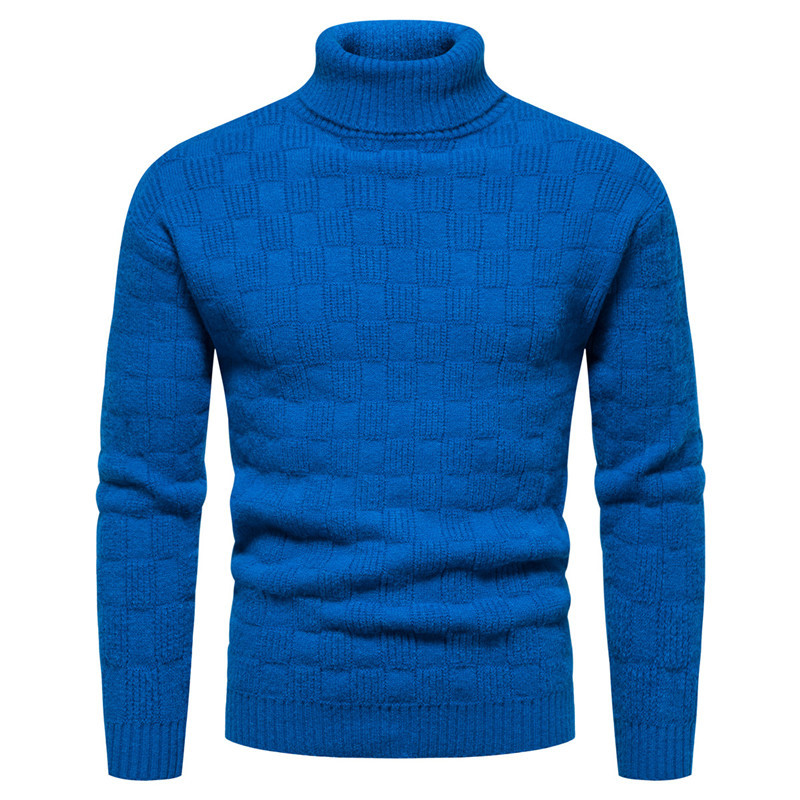 xuất khẩu ngoại thương mùa thu đông nam cao cổ kẻ sọc áo len jacquard mỏng vừa vặn co giãn áo len giản dị