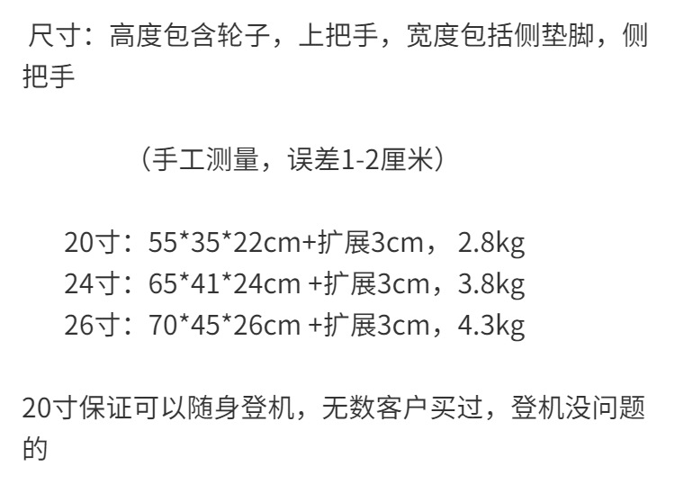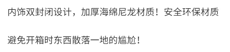 Kích thước hành lý: MINI/Mini Hoa văn: Khác Kết cấu lớp lót: Khác Có lớp mở rộng không: Khác Loại nguồn: Spot Màu sắc: Fairy Pink/Fairy Black/Ice Blue/Ice Blue Còn hàng: Không có Model: Khác Phương pháp gia công: Khác Kiểu con lăn : Bánh xe vạn năng Dù có khóa: Không Loại túi bên ngoài: Khác Dù hỗ trợ phân phối: Không phân phối Số đặt hàng: Khác Thời gian niêm yết: 2023 Loại phụ kiện: Khác Chất liệu: Kim loại Loại khóa: Khác Số dây đeo vai: Khác Số mặt hàng: Khác Thương hiệu: Khác Các tình huống áp dụng: Du lịch giải trí Các kênh bán hàng chính: Các bộ phận mang theo khác: Các địa điểm nhập khẩu khác: Hành lý khác Độ cứng: Cứng Các nền tảng hạ lưu chính: Khác Giới tính áp dụng: Trung tính/Nam và Nữ Cân nặng: Các dịp tặng quà áp dụng khác: Dòng sản phẩm khác: Hình ảnh khác: Khác Có hoặc không có Xe đẩy: Không Kích thước: 20 inch miễn phí lên xuống Chống trầy xước, chống mài mòn, chắc chắn và chịu áp lực / 24 inch chống trầy xước, chống mài mòn, mạnh mẽ và chịu áp lực Gửi hàng miễn phí / 26 inch chống xước, chống mài mòn, chắc chắn và chịu áp lực Gửi hàng miễn phí / 26 inch chống trầy xước, chống mài mòn, chắc chắn và chịu áp lực Gửi hàng miễn phí Phương pháp mở: khóa từ Cấu trúc bên trong túi: vách ngăn có thể tháo rời Kiểu dáng: Nhượng quyền Âu Mỹ Ngưỡng phân phối: khác Dung tích: 56-75L