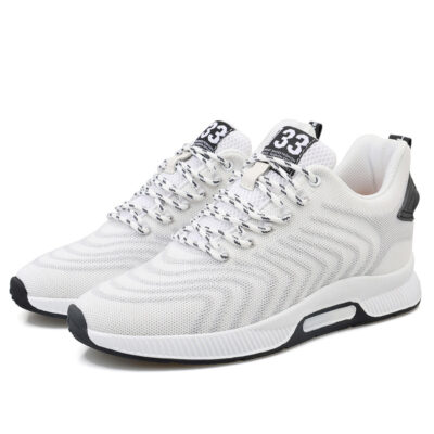 Xuyên biên giới bay dệt co giãn thoáng khí phía trên giày thể thao chạy bộ chống mài mòn giày thông thường bên trong tăng chiều cao vô hình 8cm giày nam