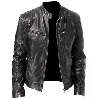 Xuyên biên giới dành riêng cho áo khoác nam da PU cỡ Âu Mỹ, áo khoác mùa xuân và mùa thu cổ đứng, áo khoác cỡ lớn cho giới trẻ xe máy