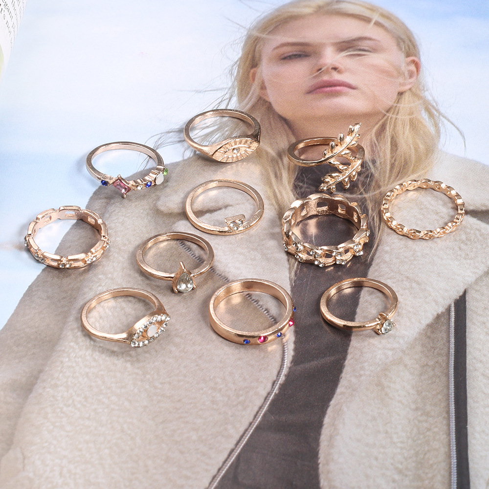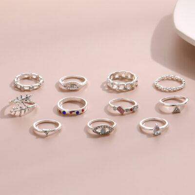 Xuyên Biên Giới Dành Riêng Cho Màu Lá Khớp Kim Cương Nhẫn Giọt Nước Giả Đá Opal Dát Nhẫn Bộ 11 Món
