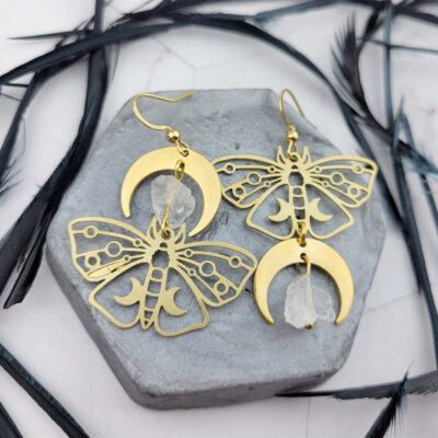 Xuyên Biên Giới Mới Mạ Vàng Bướm Mặt Trăng Mặt Dây Chuyền Bông Tai Không Đều Đá Quý Mặt Dây Chuyền Trang Sức Thời Trang