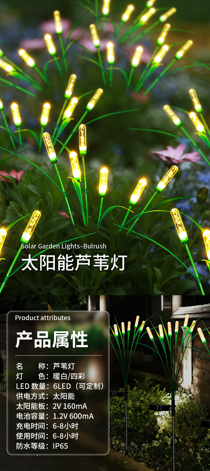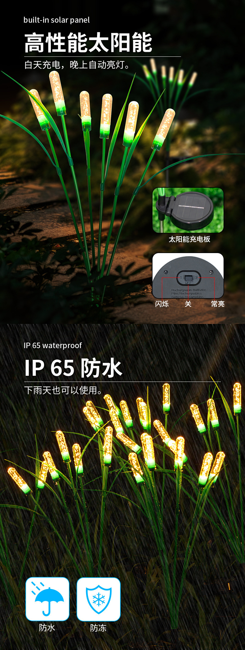 跨境新款太阳能芦苇灯LED摇摆萤火虫灯气泡柱灯户外庭院别墅装饰