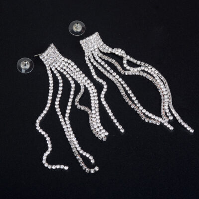 Xuyên biên giới mới thời trang châu Âu và châu Mỹ đơn giản đầy đủ kim cương nhiều hàng bông tai nữ đính pha lê kim cương