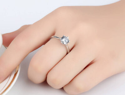 Xuyên Biên Giới Moissanite Zircon Nhẫn Đính Hôn Nam Nữ Mẫu Nhẫn Cặp Châu Âu Và Mỹ Cổ Điển 6 Móng Cặp Nhẫn Đôi Bán Buôn