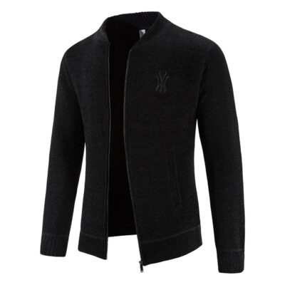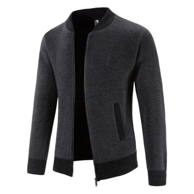 Xuyên biên giới nam dệt kim cardigan áo len mùa thu Plus nhung dày ấm cổ áo bóng chày áo khoác hợp thời trang dây chuyền quần áo