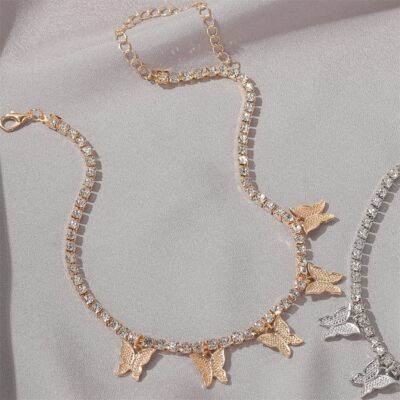 Xuyên biên giới nổ rhinestone bươm bướm mặt dây chuyền vòng cổ nữ ins phong cách côn trùng vòng cổ châu Âu và Mỹ hip-hop trang sức vòng cổ
