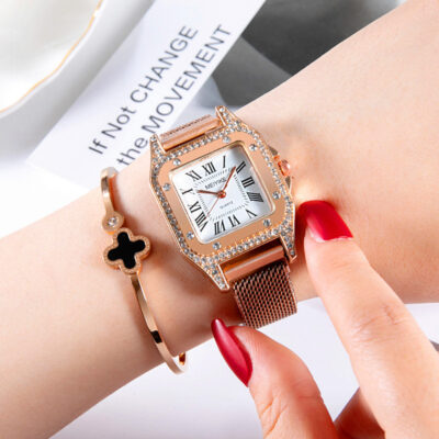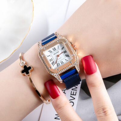 Xuyên Biên Giới Nổ Vuông Nam Châm Đồng Hồ Nữ Trực Tiếp Bán Kim Cương Xu Hướng Retro Nhỏ Hình Vuông Đồng Hồ Nữ Bán Buôn