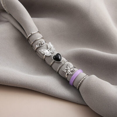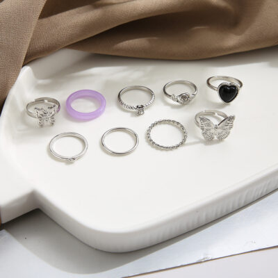 Xuyên biên giới retro bộ nhẫn bướm 9 miếng sáng tạo trái tim trái đào đen nhẫn bạc cổ nhẫn kim cương nhẫn hoa hồng