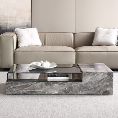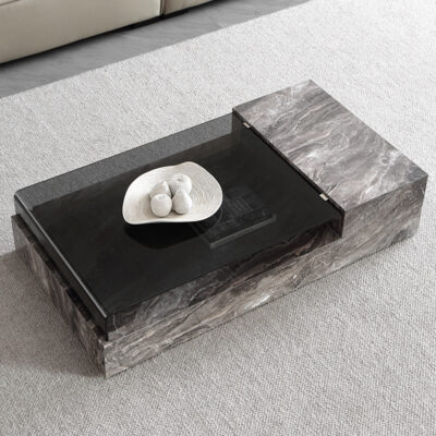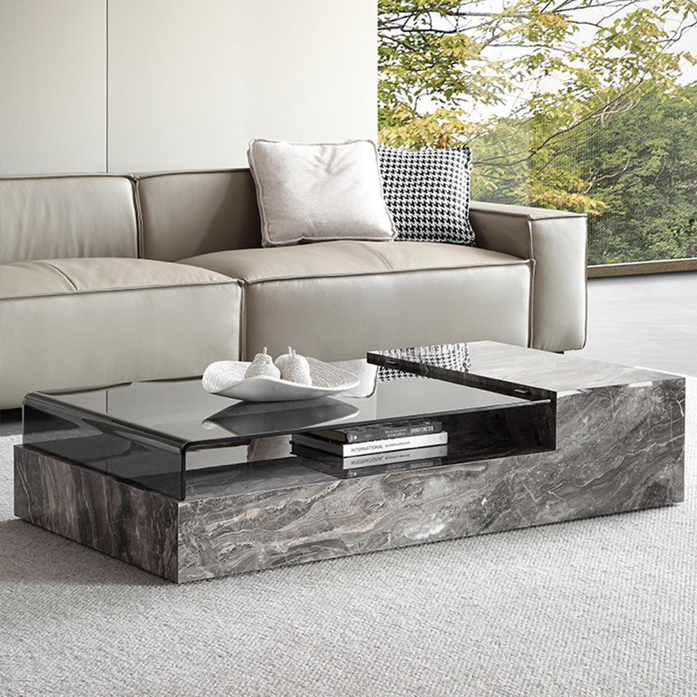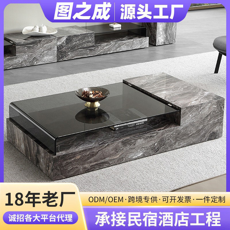 Ý ánh sáng sang trọng đá tấm bàn cà phê hình chữ nhật căn hộ nhỏ phòng khách Venice nâu thiết kế bàn cà phê tủ TV