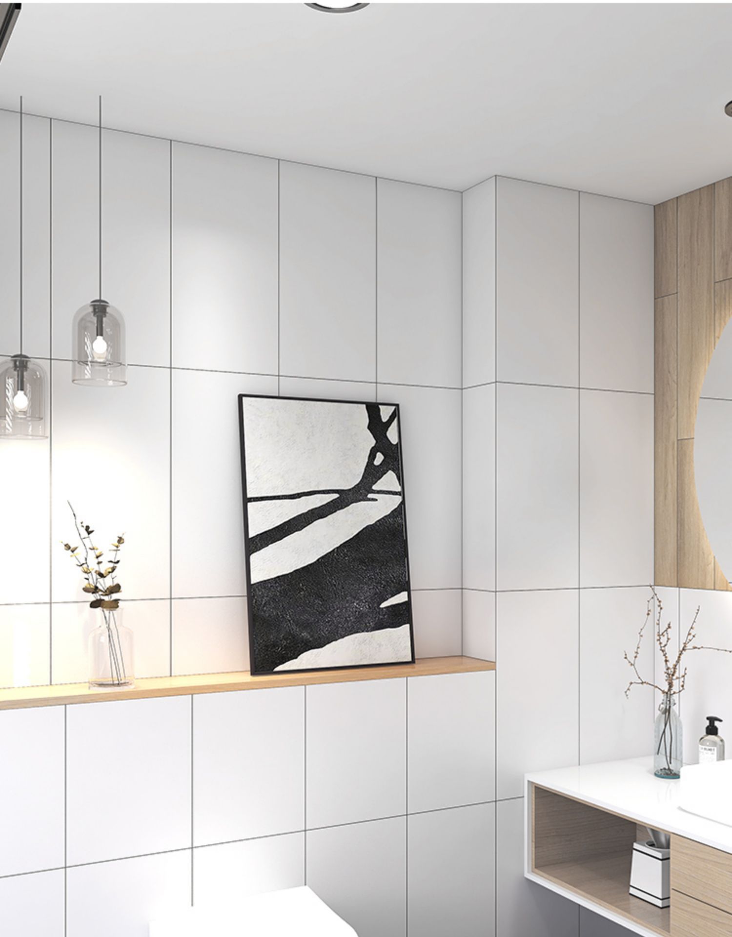 Ý mới mờ toàn thân màu trắng tinh khiết lát sàn pha lê lỗ ánh sáng dịu phòng khách phòng tắm sáng gạch ốp bếp