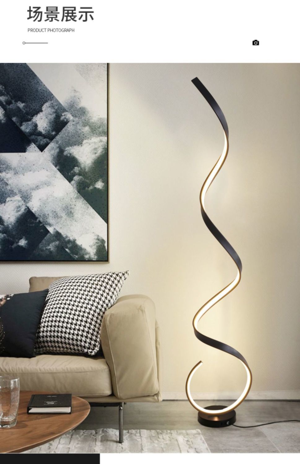 Ý nghĩa thiết kế đèn sàn nghệ thuật phòng khách bên cạnh ghế sofa lưới ánh sáng đỏ đèn ngủ sang trọng Bắc Âu đơn giản