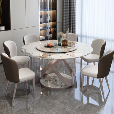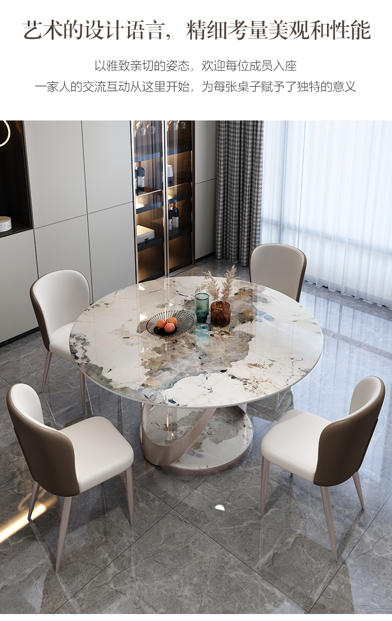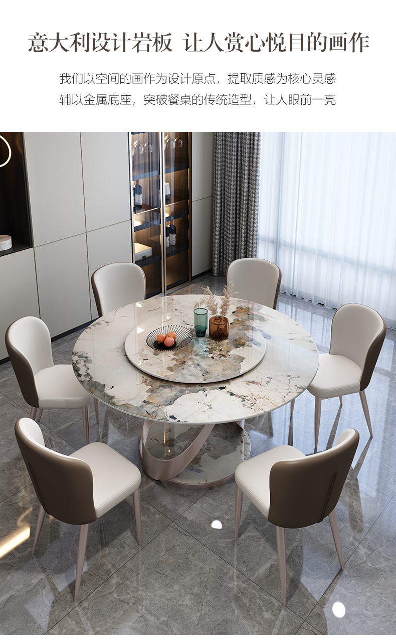 Ý nhẹ nhàng sang trọng sáng đá phiến đá bàn ghế tròn kết hợp với bàn xoay hiện đại tối giản bàn ăn nhà vừa và nhỏ – Bàn ăn nhập khẩu cao cấp