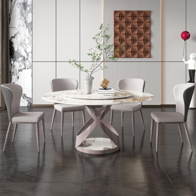 Ý nhẹ nhàng sang trọng sáng đá phiến đá bàn ghế tròn kết hợp với bàn xoay hiện đại tối giản bàn ăn nhà vừa và nhỏ là sản phẩm nổi bật trong dòng bàn ăn nhập khẩu, thiết kế hiện đại và sang trọng, phù hợp với nhiều không gian nội thất cao cấp.