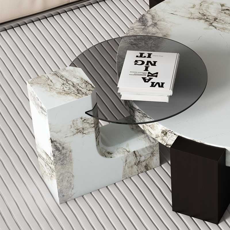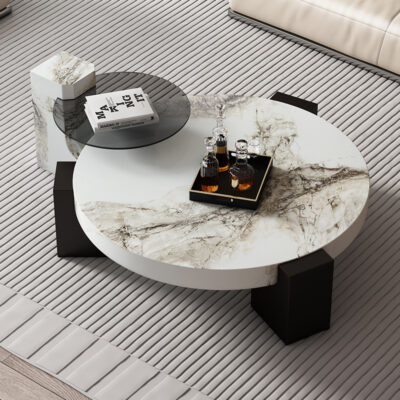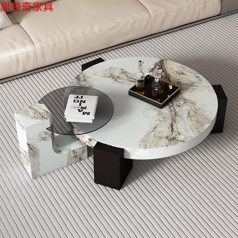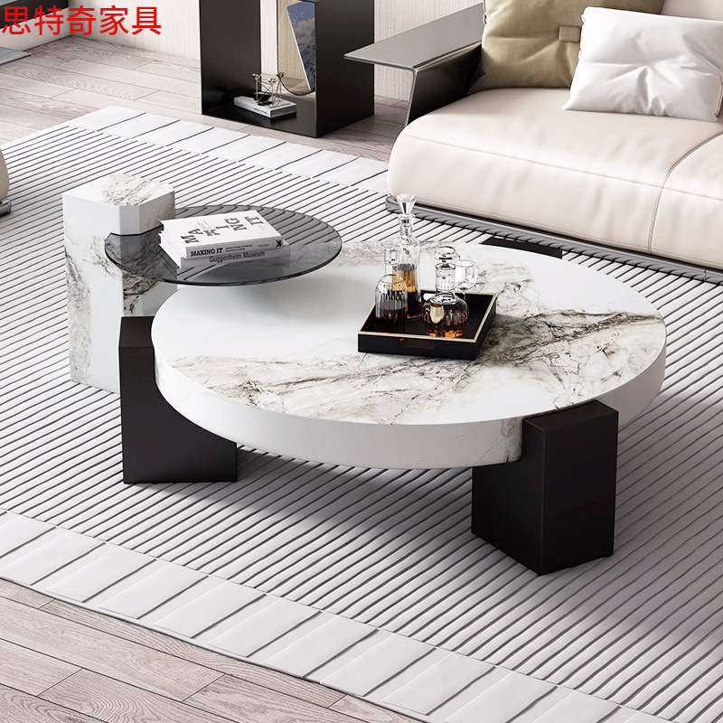 Ý tối giản bàn cà phê bằng đá cẩm thạch phòng khách kích thước nhà ánh sáng sang trọng kết hợp tròn thiết kế tiên tiến phong cách mới