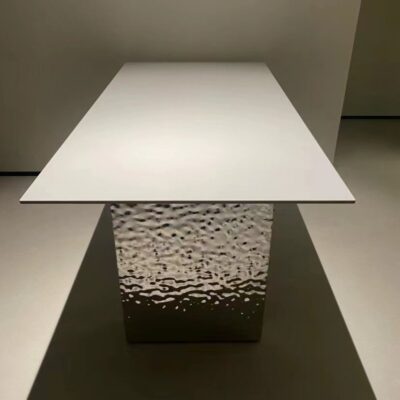 Ý tối giản bằng thép không gỉ acrylic gợn sóng nước lơ lửng phiến đá bàn ăn gia đình bàn ghế ăn bằng đá cẩm thạch tự nhiên – Bàn ăn nhập khẩu cao cấp