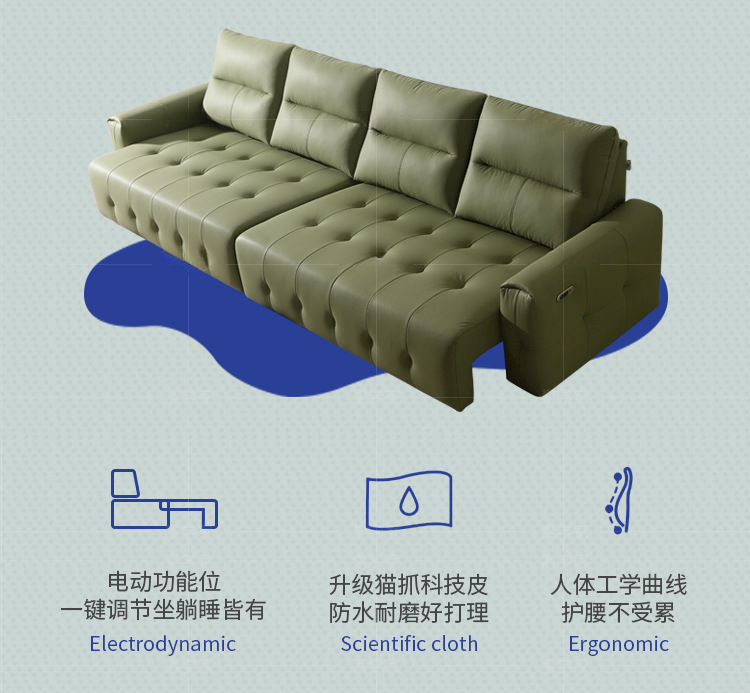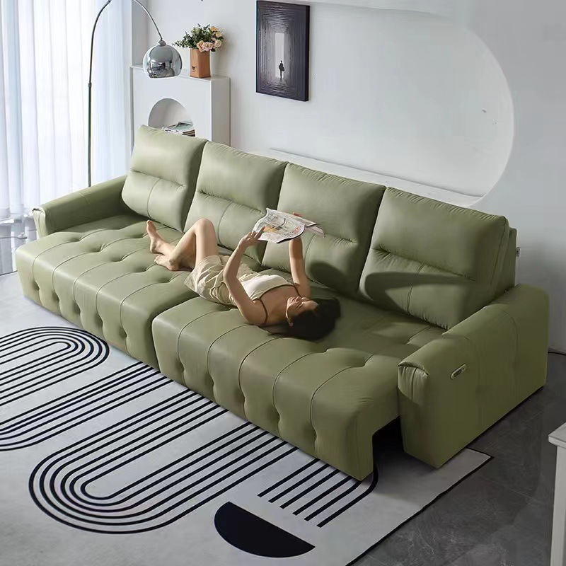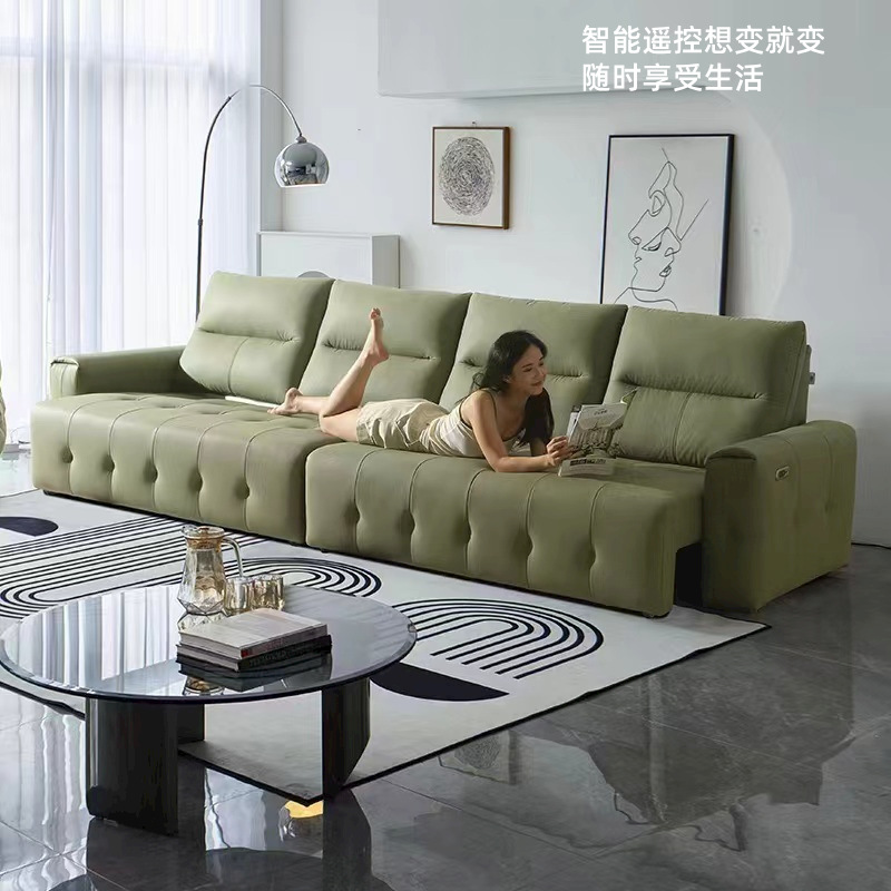 Ý tối giản da có thể thu vào chức năng điện sofa giường phòng khách kép phòng khách thẳng hàng mèo gãi vải ghế sofa lười