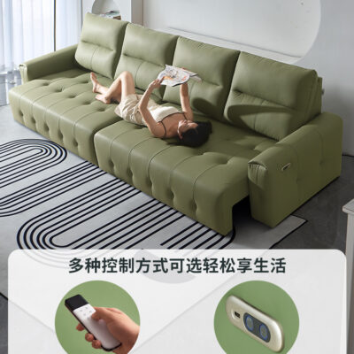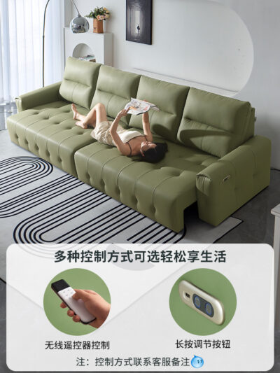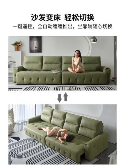 Ý tối giản da có thể thu vào chức năng điện sofa giường phòng khách kép phòng khách thẳng hàng mèo gãi vải ghế sofa lười