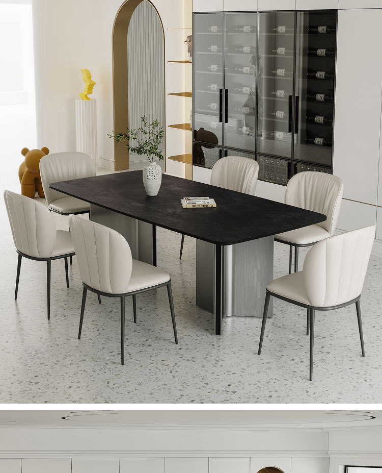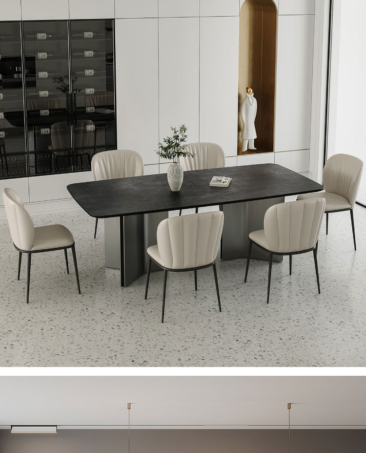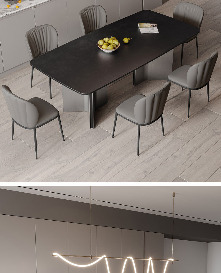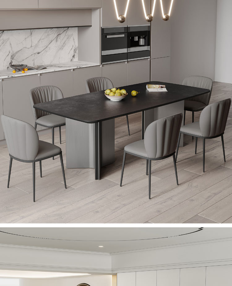 Ý tối giản hiện đại màu xám thép đen kết hợp bàn ăn và ghế bàn phòng khách cỡ lớn hình chữ nhật cao cấp – Bàn ăn nhập khẩu cao cấp