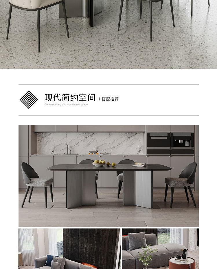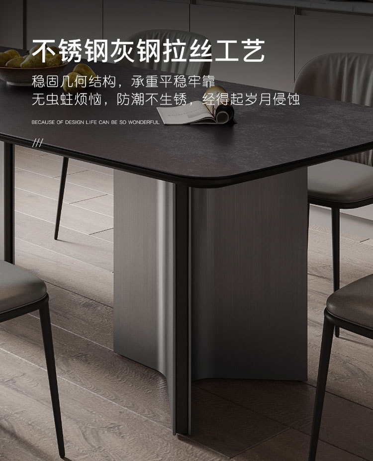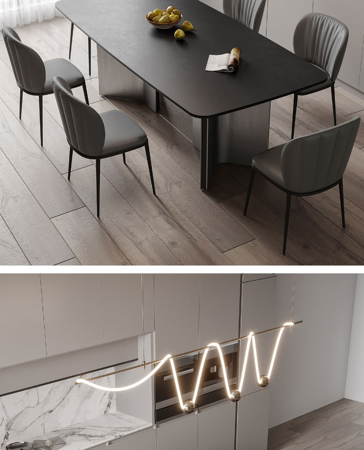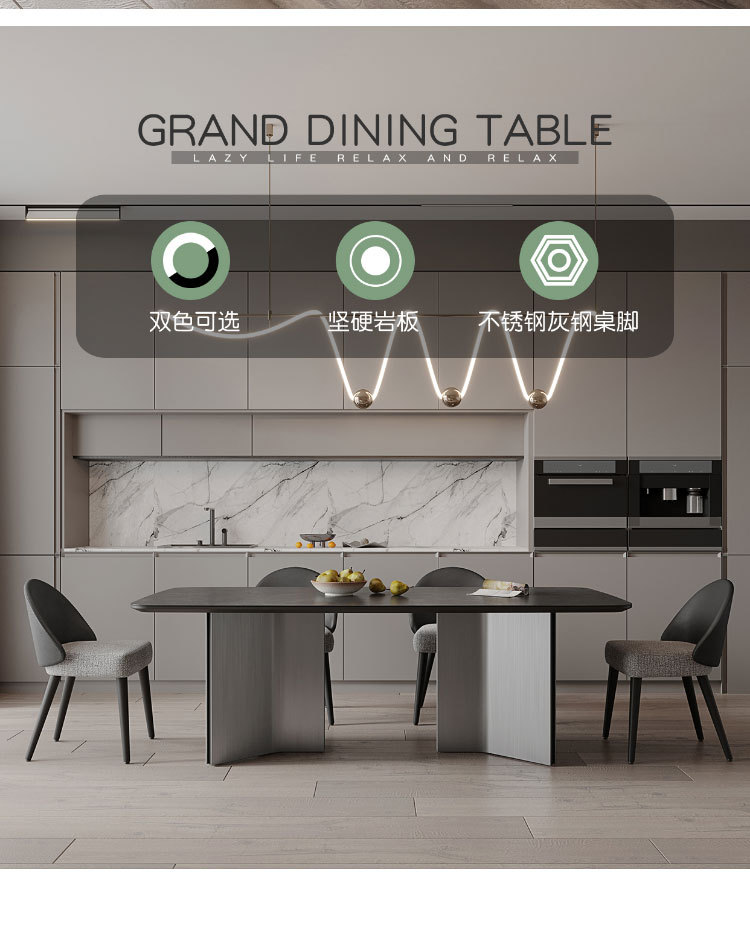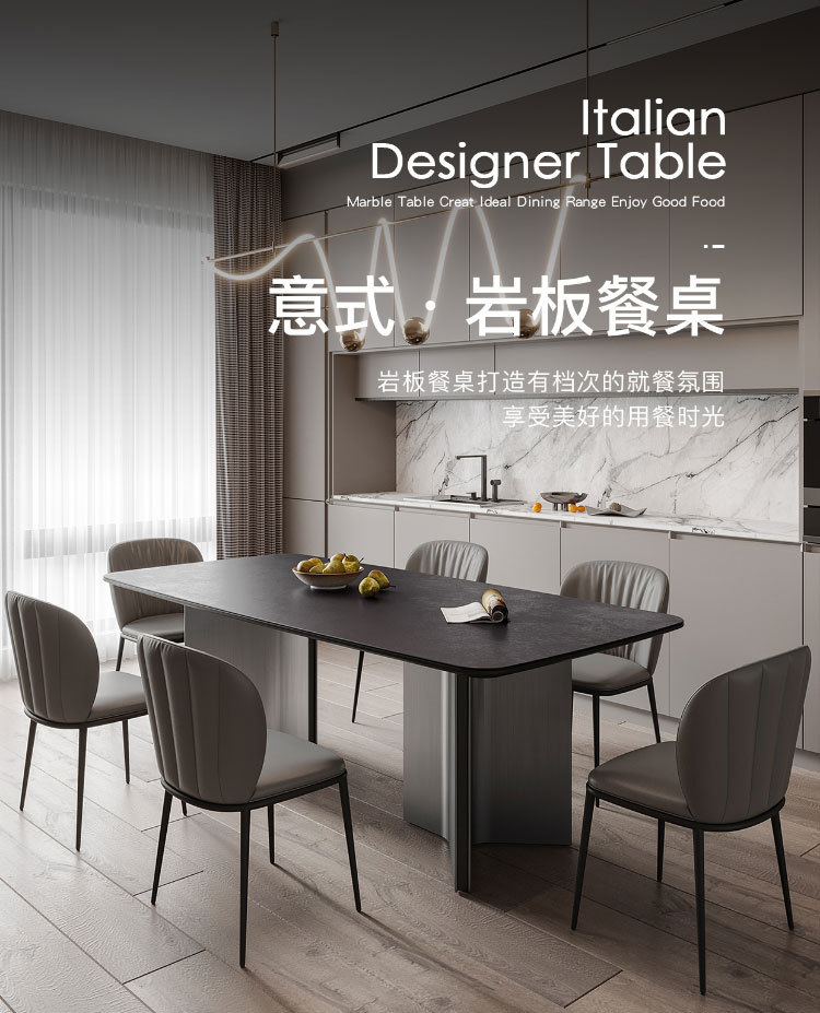 Ý tối giản hiện đại màu xám thép đen kết hợp bàn ăn và ghế bàn phòng khách cỡ lớn hình chữ nhật cao cấp – Bàn ăn nhập khẩu cao cấp