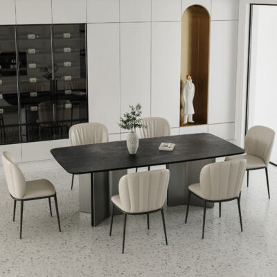 Ý tối giản hiện đại màu xám thép đen kết hợp bàn ăn và ghế bàn phòng khách cỡ lớn hình chữ nhật cao cấp là sản phẩm nổi bật trong dòng bàn ăn nhập khẩu, thiết kế hiện đại và sang trọng, phù hợp với nhiều không gian nội thất cao cấp.