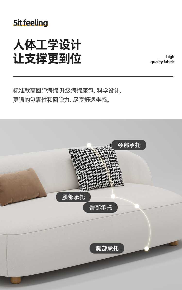 意式极简科技布沙发客厅大小户型奶油风网红直排广东佛山布艺   奶油风羊羔绒布艺沙发小户型客厅ins风简约棉花糖北欧三人位沙发