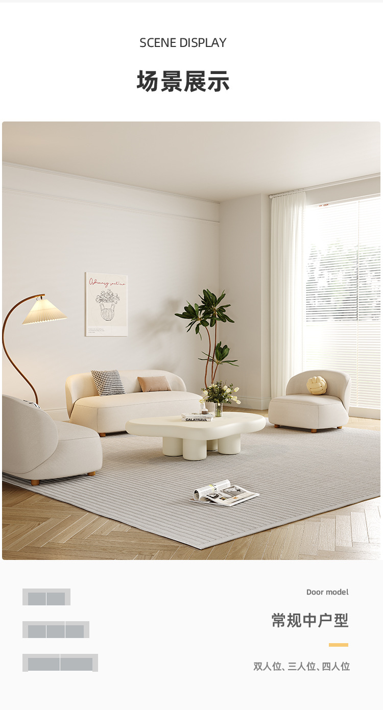 北欧现代简约轻奢科技布弧形客厅沙发组合大小户型设计师家具异形 现代简约弧形羊羔绒沙发小户型科技布三人轻奢酒店客厅多人位沙发