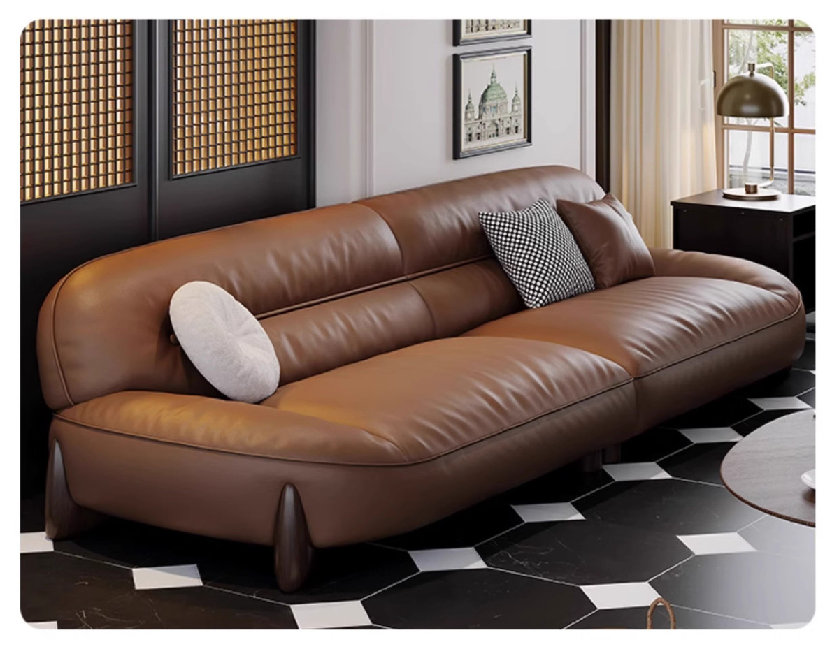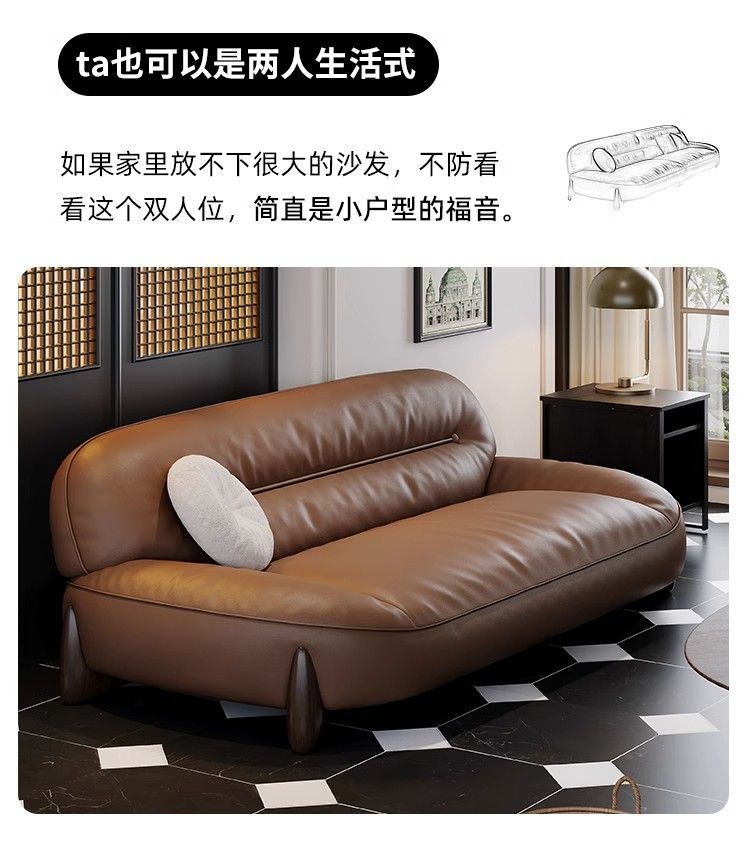 Ý tối giản lớp đầu sofa da bò đơn giản Đẹp sang trọng retro căn hộ nhỏ thẳng hàng kaki màu nâu