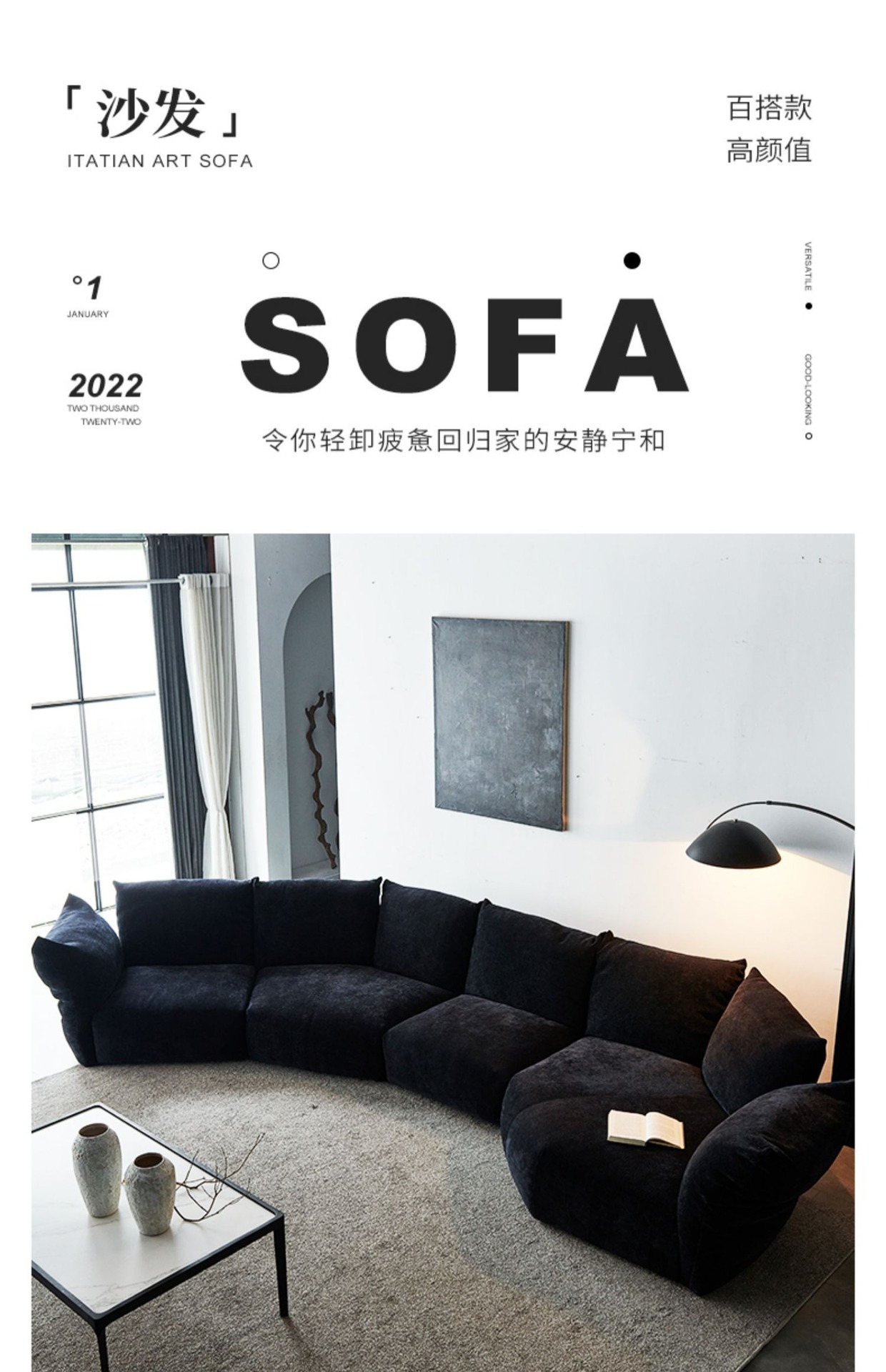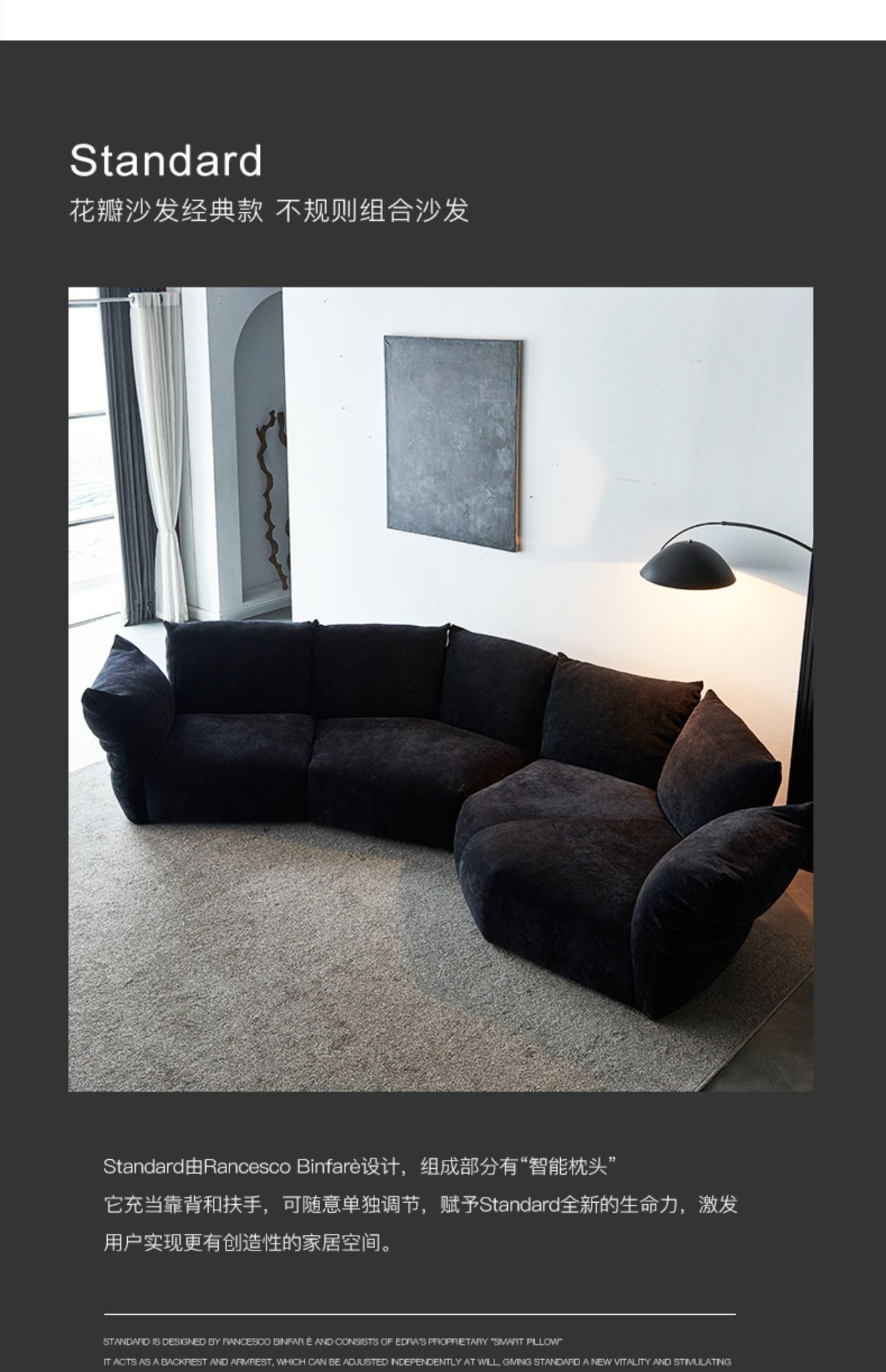 Ý tối giản sofa cánh hoa vải edra đẹp sang trọng Ý góc vòng cung BAXTER hình Bắc Âu ghế dài