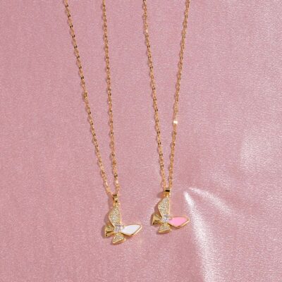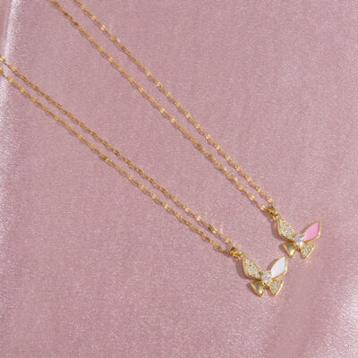Y2k Đồng Thau Mạ Vàng Thật Nữ Vòng Cổ Bướm Ánh Sáng Sang Trọng Zircon Thép Titan Dây Chuyền Nhỏ Giọt Dầu Vòng Cổ Bảo Quản Màu Trang Sức