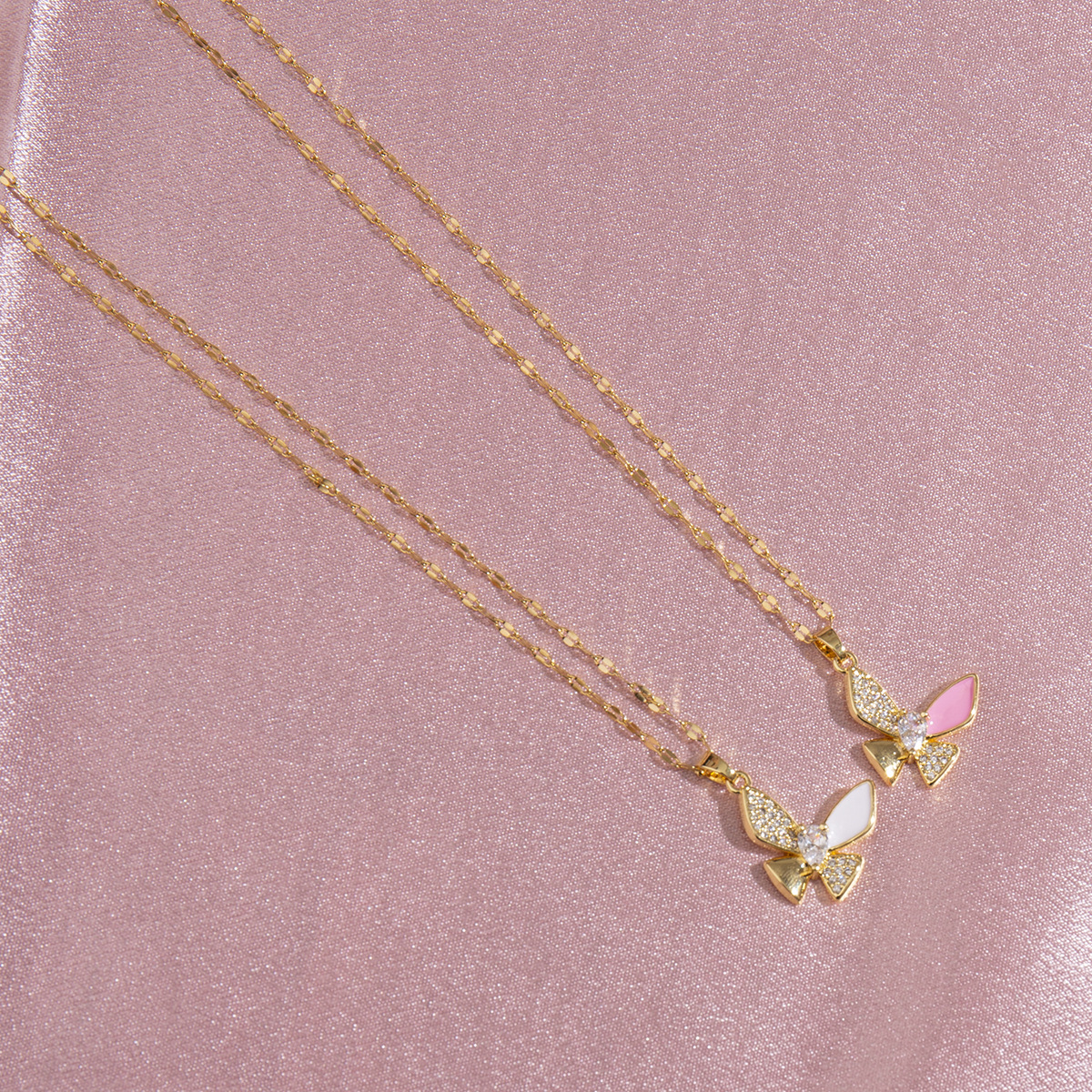 Y2k Đồng Thau Mạ Vàng Thật Nữ Vòng Cổ Bướm Ánh Sáng Sang Trọng Zircon Thép Titan Dây Chuyền Nhỏ Giọt Dầu Vòng Cổ Bảo Quản Màu Trang Sức