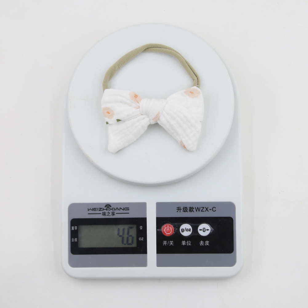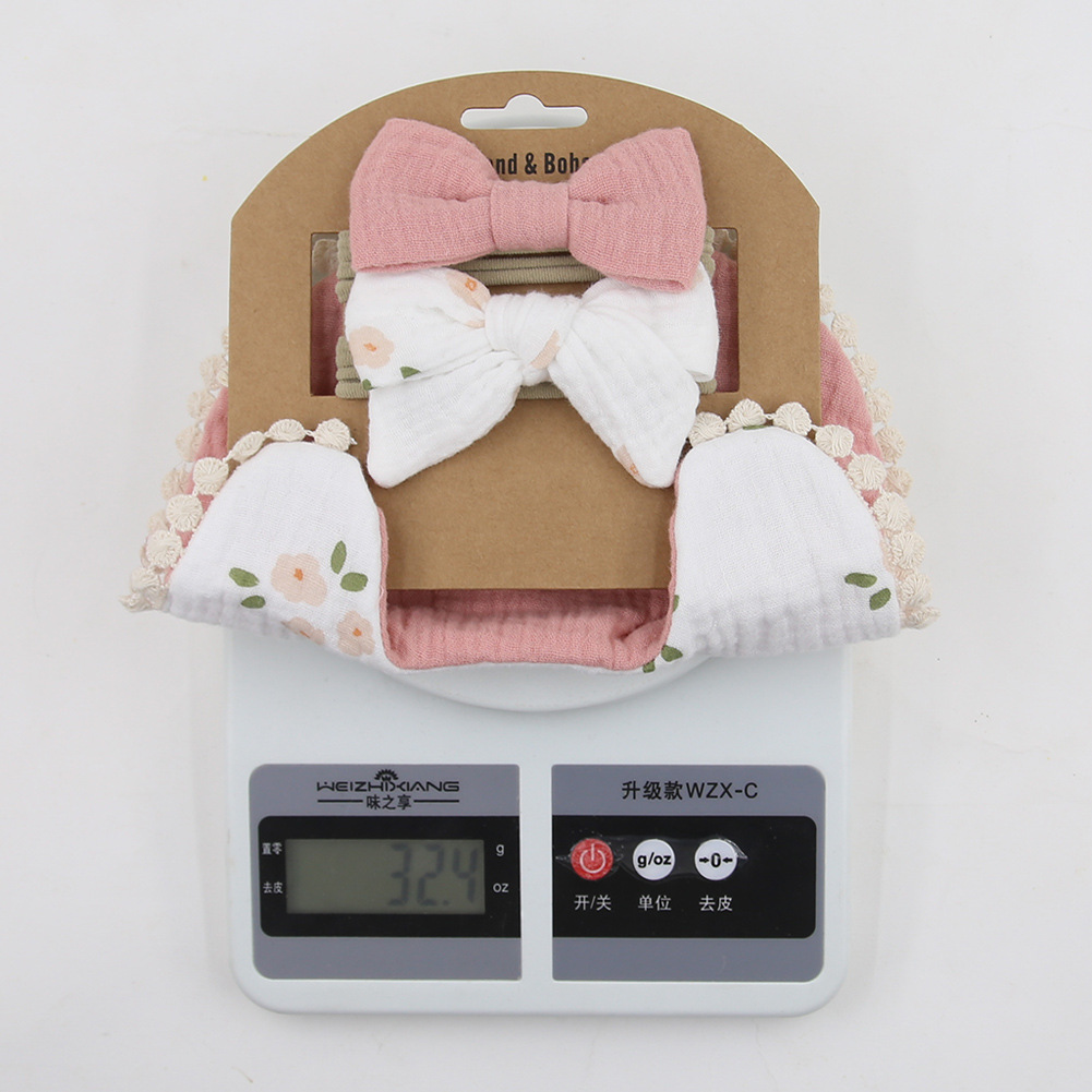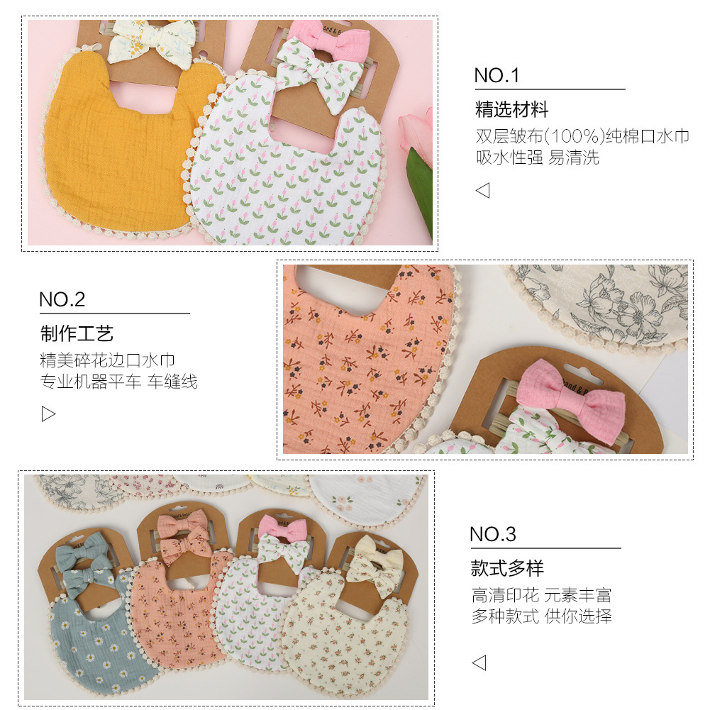 Yếm in hình em bé xuyên biên giới Yếm cotton gạc hai lớp trẻ em Bộ băng đô nơ trẻ em
