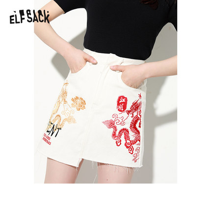 Yêu tinh của túi trắng váy lưng cao của phụ nữ mùa hè không thường xuyên thiết kế cảm giác thích hợp váy ngắn một dòng váy phong cách quốc gia