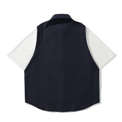 Yidao cổ điển mùa hè 2023 phong cách Mỹ retro khâu áo sơ mi ngắn tay nam hợp thời trang giản dị phù hợp với tất cả các trận đấu áo sơ mi nửa tay áo sơ mi