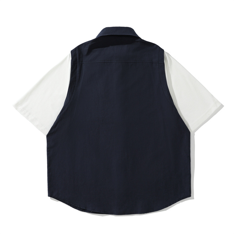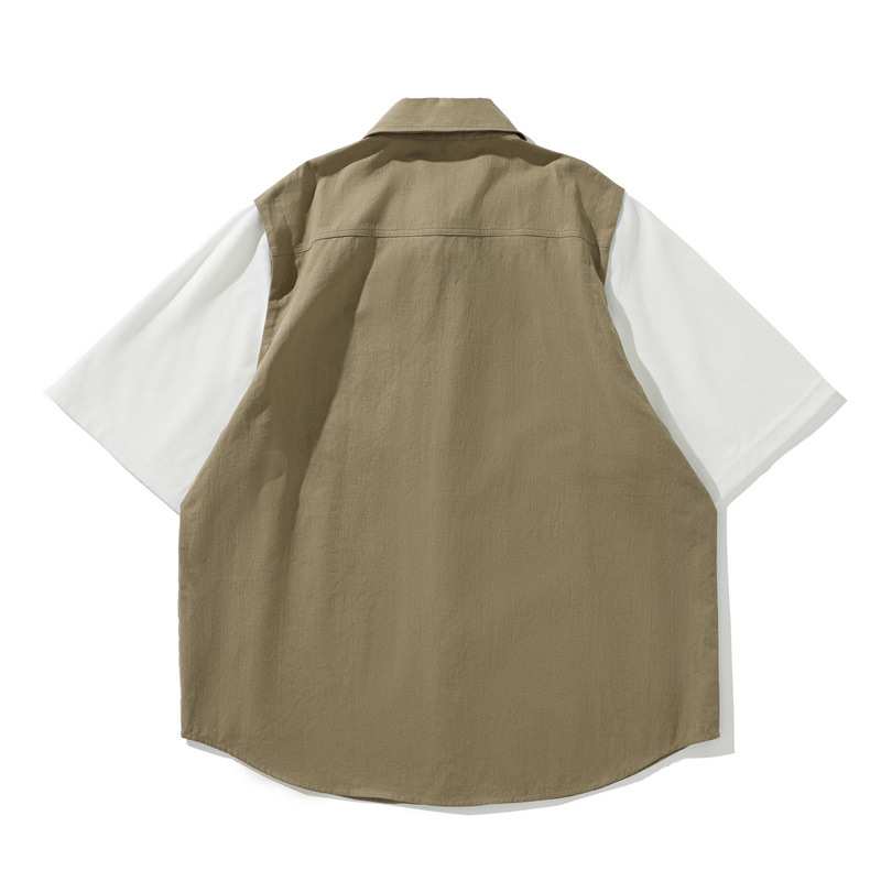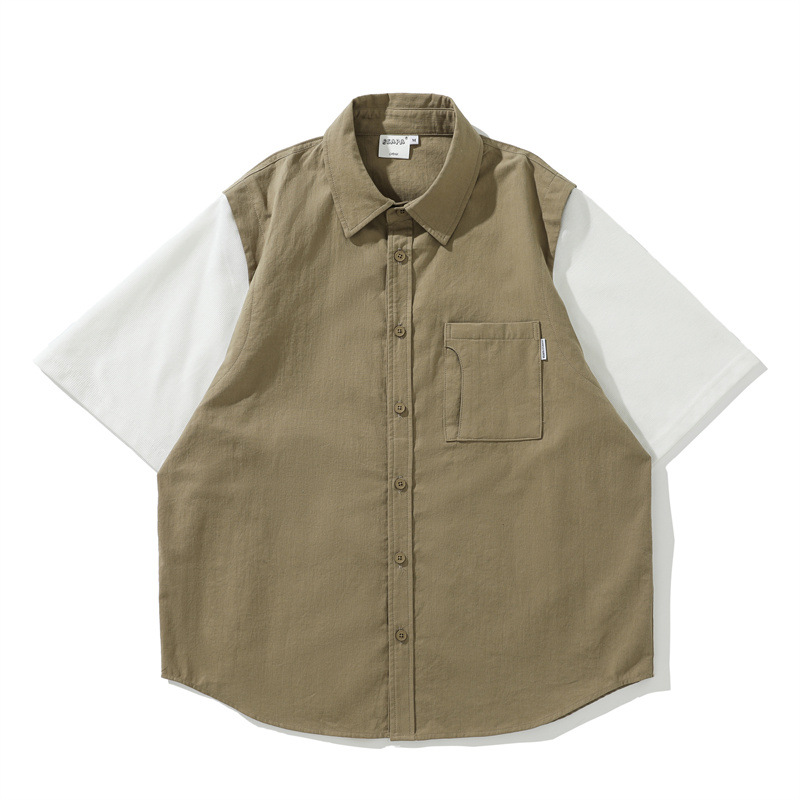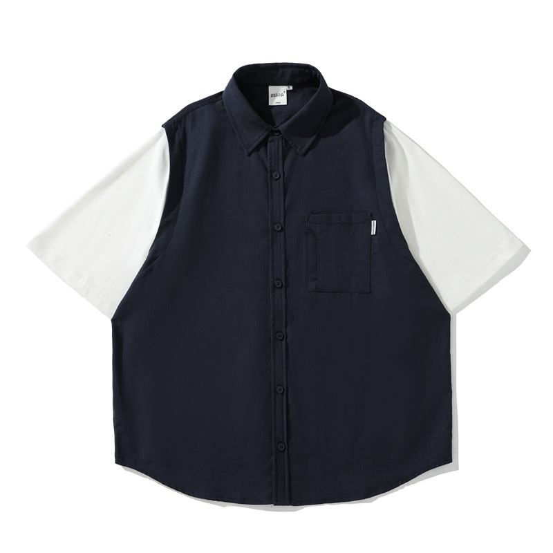 Yidao cổ điển mùa hè 2023 phong cách Mỹ retro khâu áo sơ mi ngắn tay nam hợp thời trang giản dị phù hợp với tất cả các trận đấu áo sơ mi nửa tay áo sơ mi
