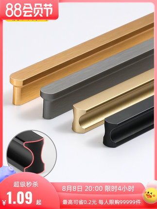 Yijia hình chữ T dài tối giản hiện đại tối giản cao cấp tủ quần áo màu đen tay nắm cửa tủ ngăn kéo dài tay nắm cửa tủ