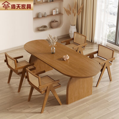 Yitian Ngạc nhiên Silent Wind Bàn ăn Log Bàn ăn hình chữ nhật gia đình Bàn ăn gia đình nhỏ Kết hợp bàn ăn gỗ nguyên khối và ghế