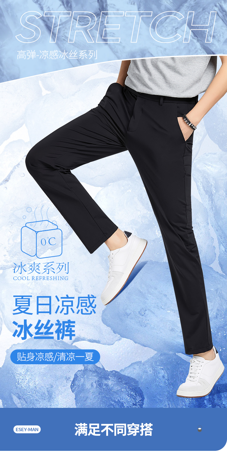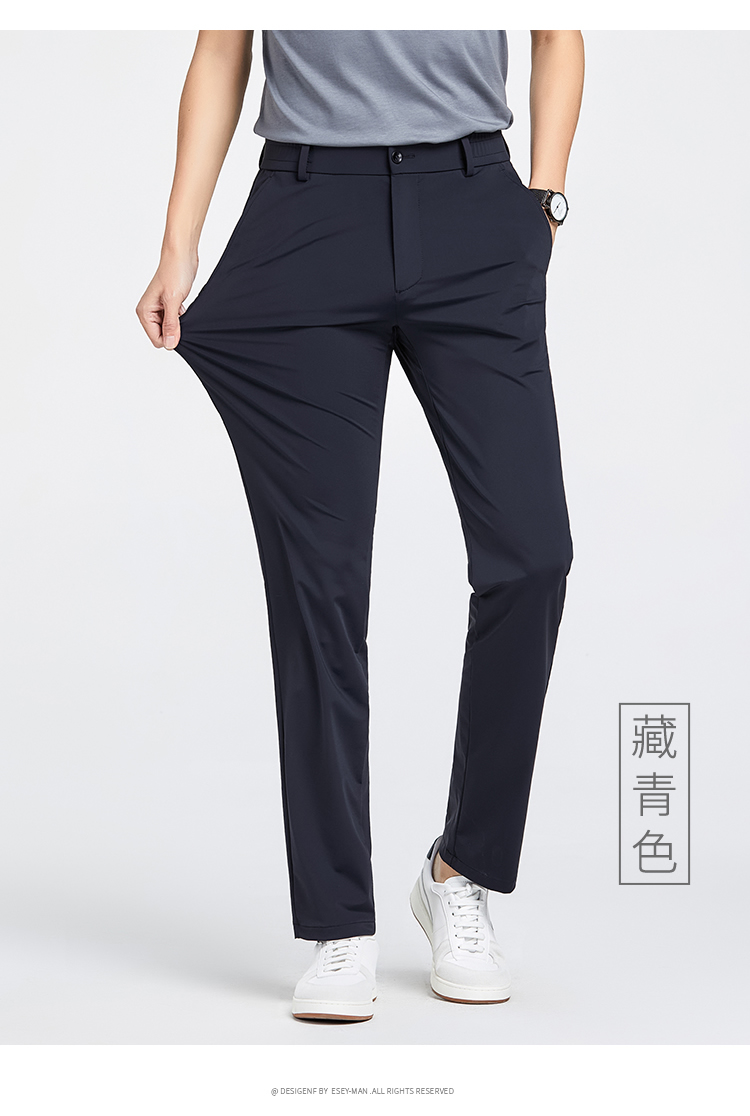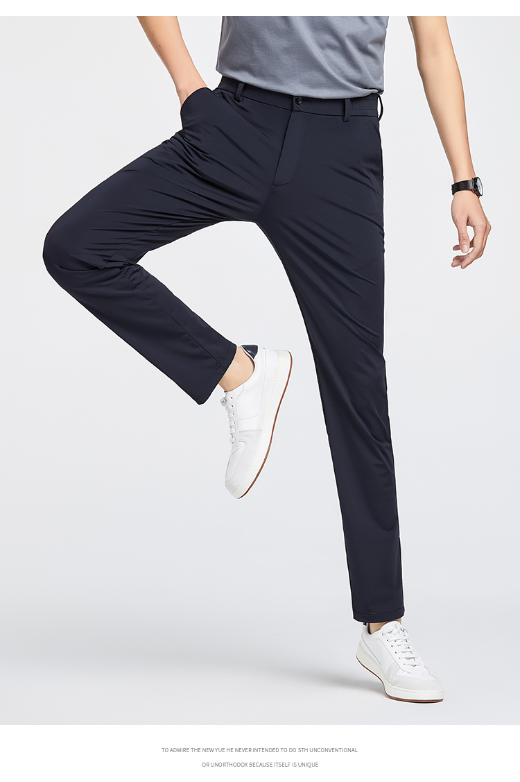 Yiyang Ice Silk Quần âu của nam giới Mùa hè mỏng nhanh khô Quần mỏng vừa vặn đàn hồi Quần kinh doanh thẳng Quần nam thường