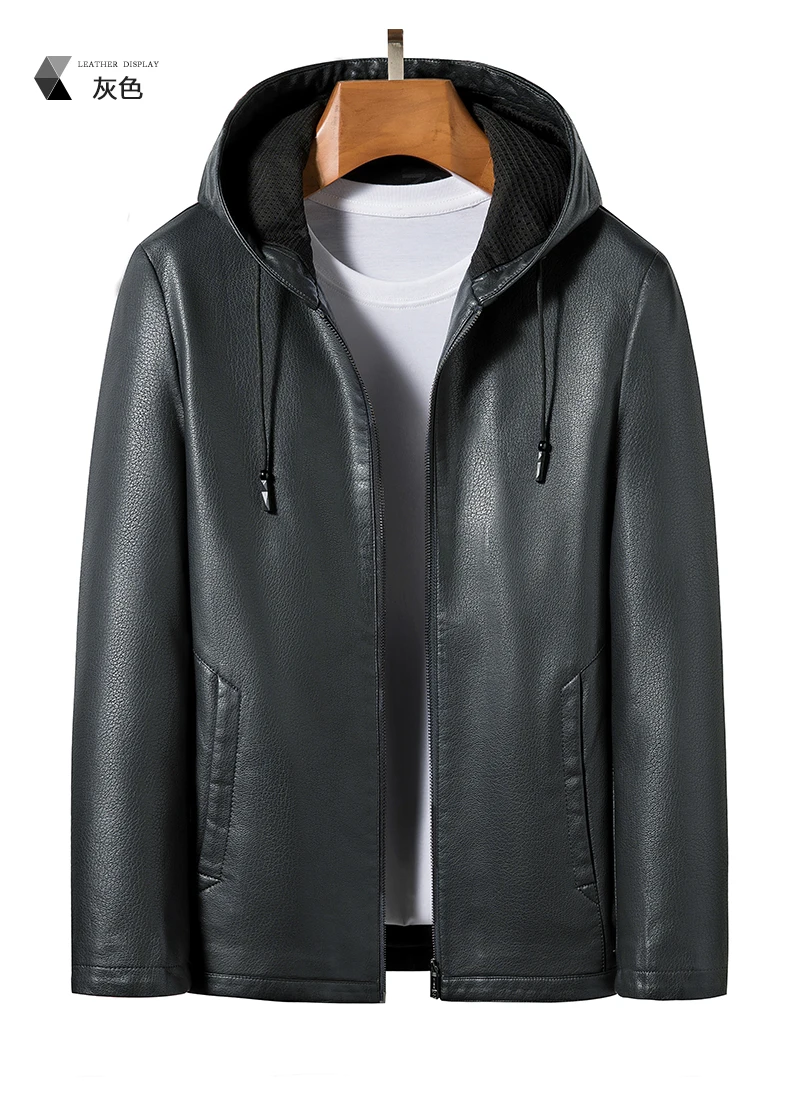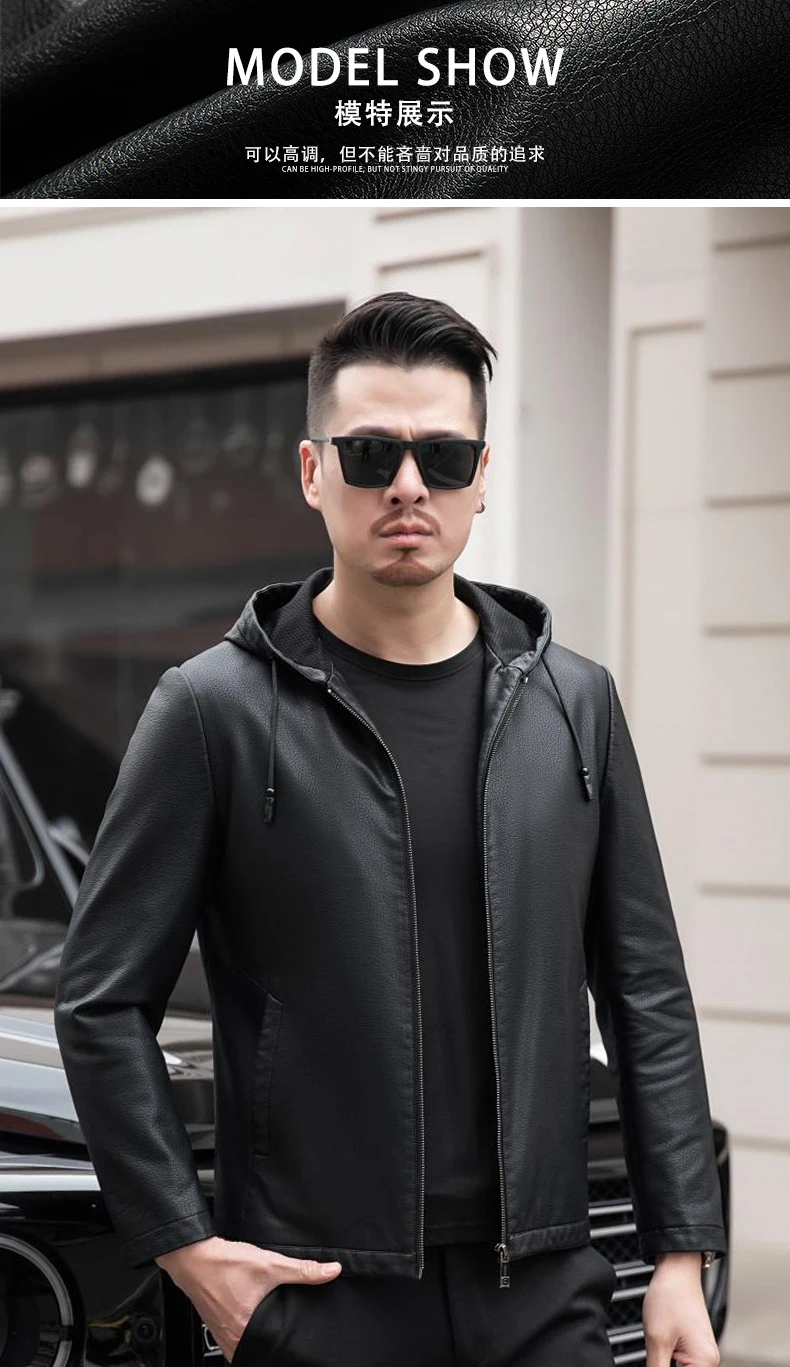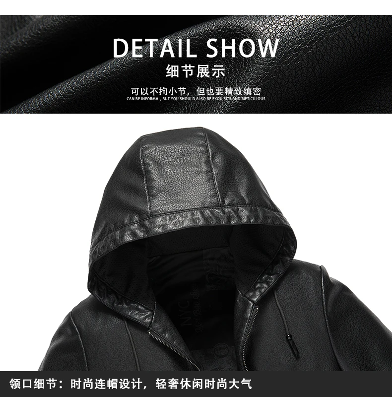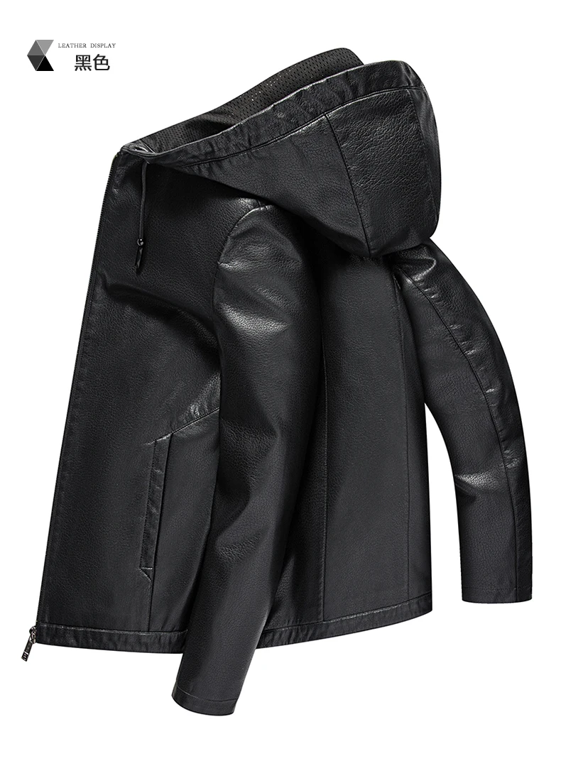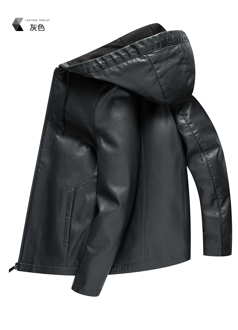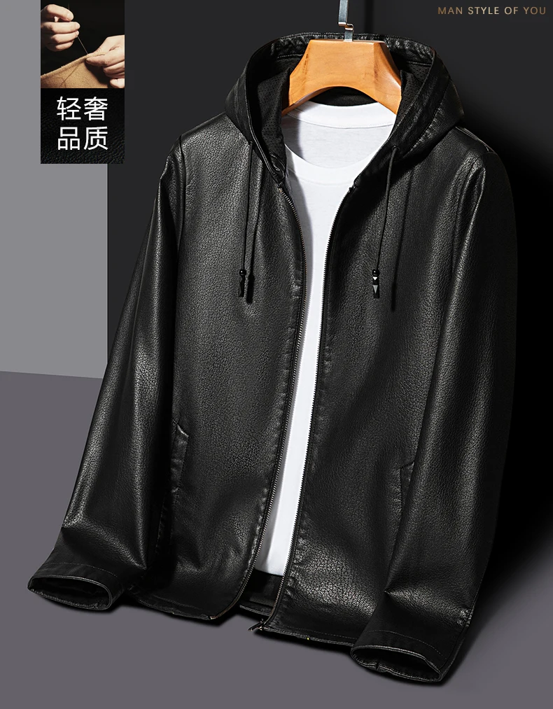 YN-2261 Xuân Thu Mỏng Nam Thanh Niên Áo Da Plus Nhung Có Mũ Trùm Đầu Mặc Thời Trang Có Độ Dày