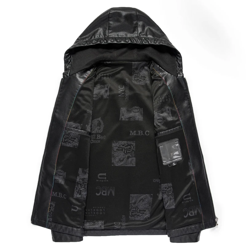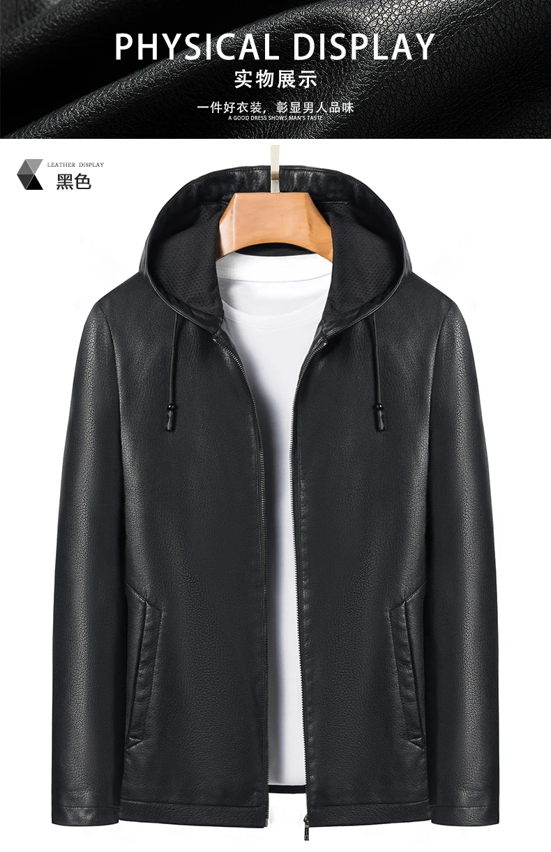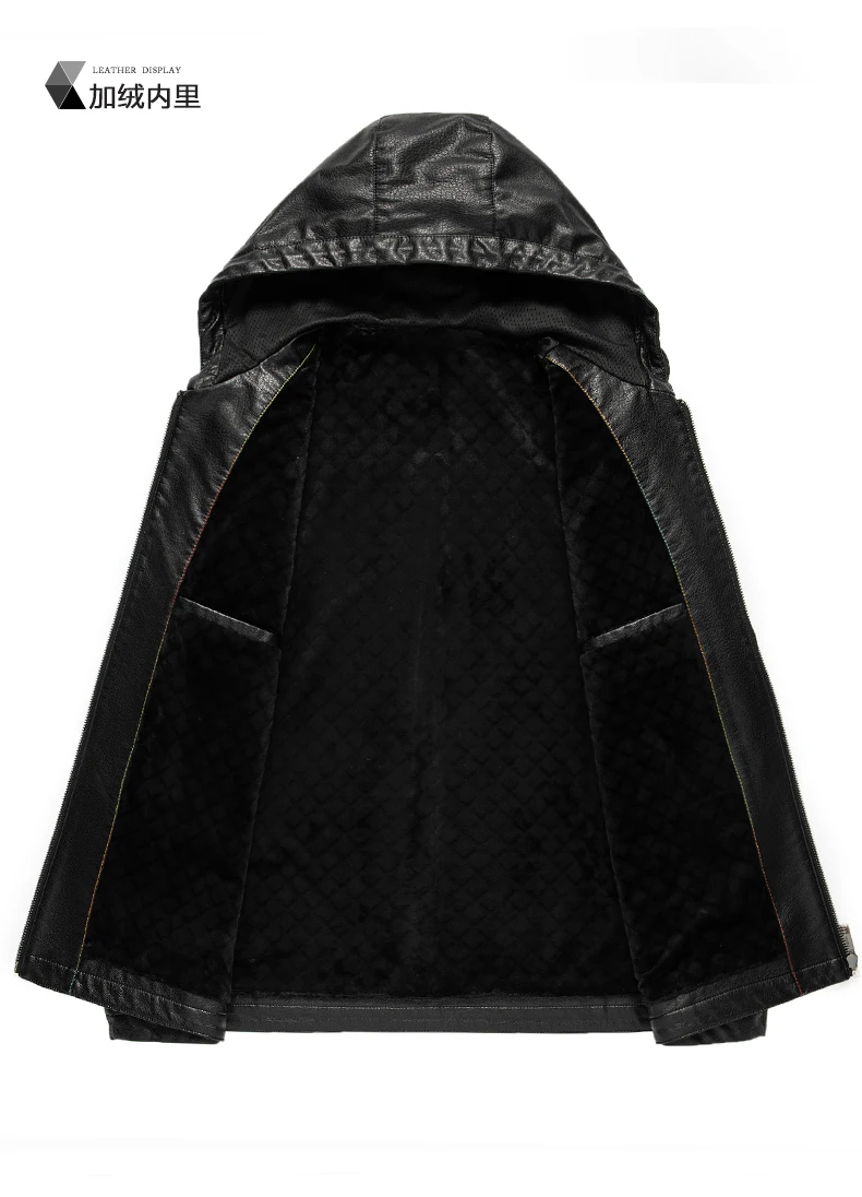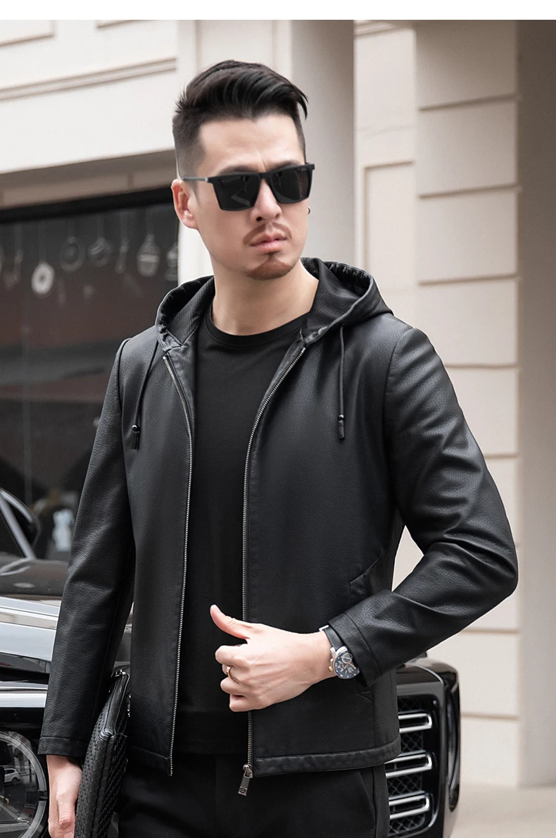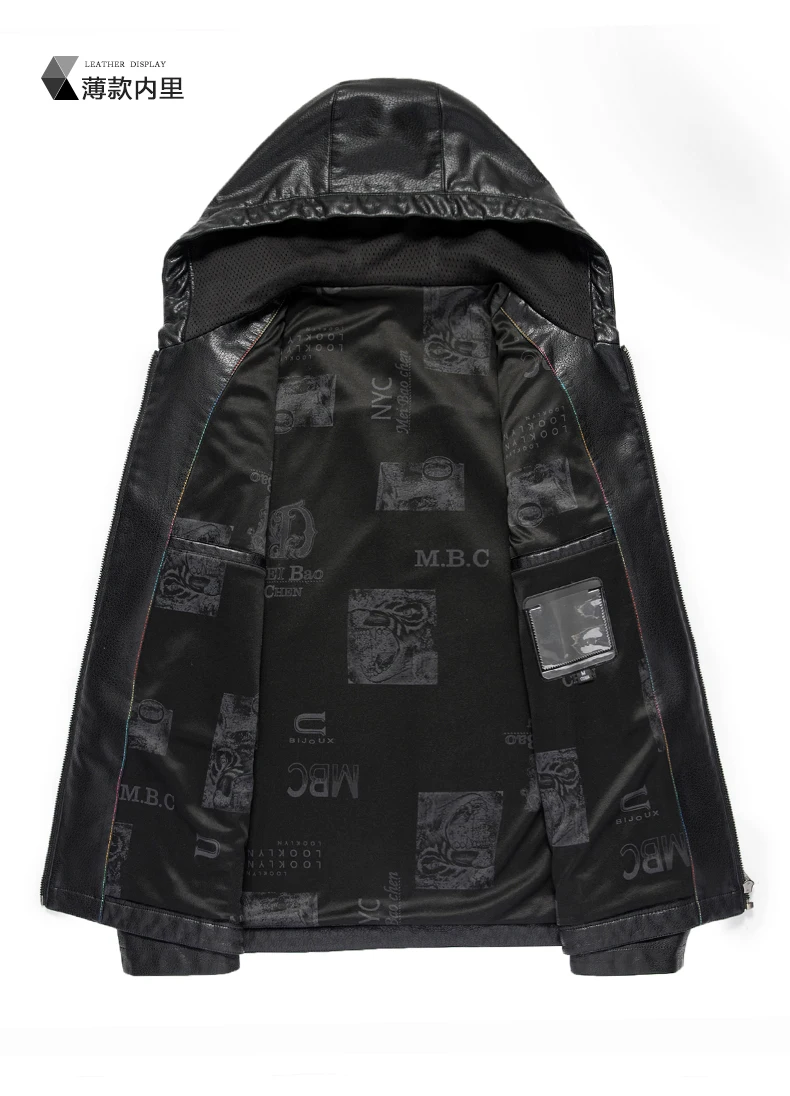 YN-2261 Xuân Thu Mỏng Nam Thanh Niên Áo Da Plus Nhung Có Mũ Trùm Đầu Mặc Thời Trang Có Độ Dày