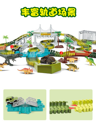 - 颜色分类: 礼盒装【软轨96片+恐龙*2+穿越门】送小汽车 礼盒装【软轨142片+恐龙*2+穿越门】送小汽车 礼盒装【软轨168片+恐龙*6+铁道笼】送暴龙车