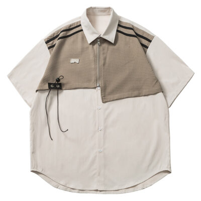 YPRS nam hợp thời trang thương hiệu giả hai mảnh khâu thích hợp áo sơ mi ngắn tay nam và nữ đường phố retro phiên bản rộng oversize