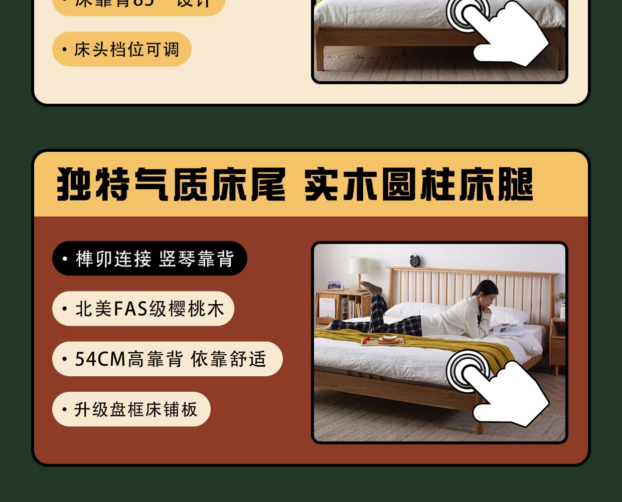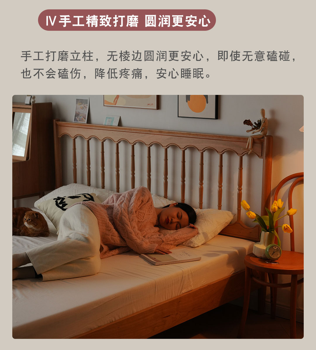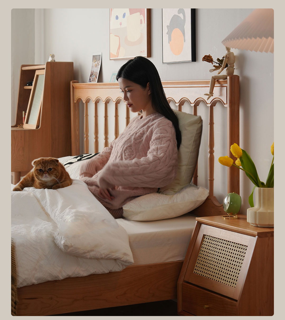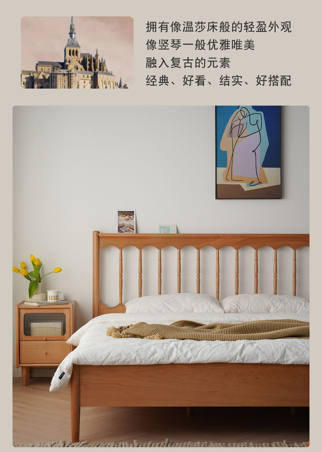 Yu Lane gỗ rắn Giường Windsor gỗ anh đào Đồ nội thất kiểu Bắc Âu Nhật Bản phòng ngủ đơn retro 1,5 m 1,8 m giường đôi