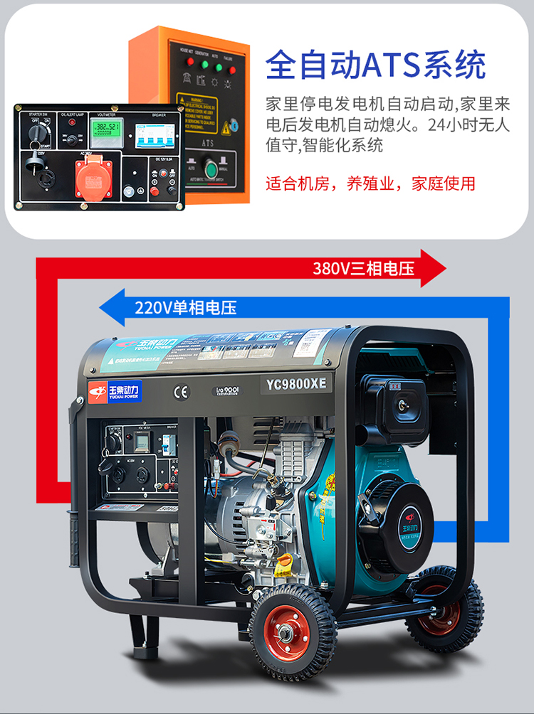 Yuchai điện máy phát điện diesel gia dụng 220v nhỏ 3/5/6/8 kW 10KW một pha 380 câm