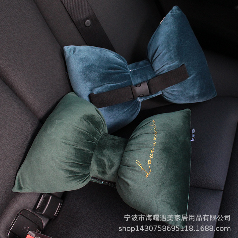 Yumei Nhung Gối Tựa Đầu Ô Tô Cổ Gối Nội Thất Ô Tô Phụ Kiện Nơ Bắc Âu Thêu Cao Cấp Gối Tựa Đầu Ô Tô