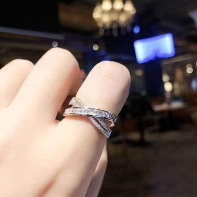 Yunjin xuyên biên giới thời trang đơn giản mới nạm kim cương vòng mở chéo zircon cao cấp cảm giác Đẹp sang trọng vòng gió lạnh