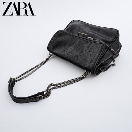 ZARA túi nữ mới màu đen phong cách rock thời trang túi xách tay đơn giản 6312511 040