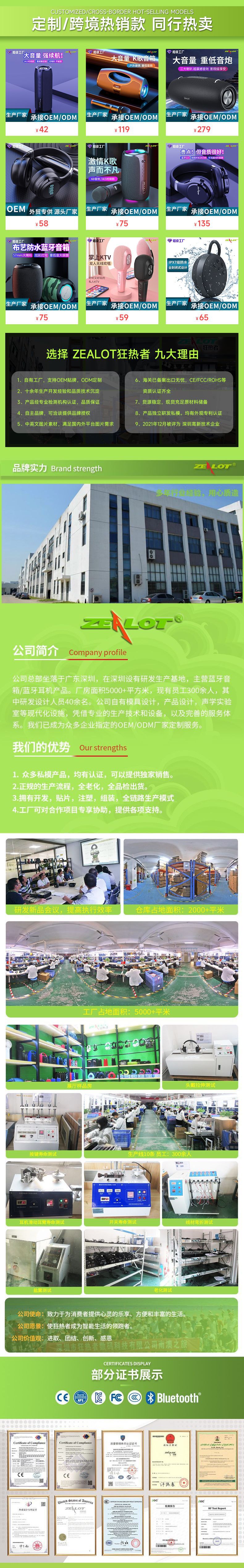 狂热者数码超级工厂 企业实力:深圳市狂热者数码科技有限公司是一家主营蓝牙音箱/蓝牙耳机等数码产品的源头工厂,自主创立品牌“zealot“,支持订制LOGO,承接广大客户OEM/ODM订单,欢迎国内外各大电商平台(亚马逊、EBYE、速卖通等)洽谈业务,现货供应,仓库专人发货(默认发中通或优速)量大请直接联系13751090122杨经理