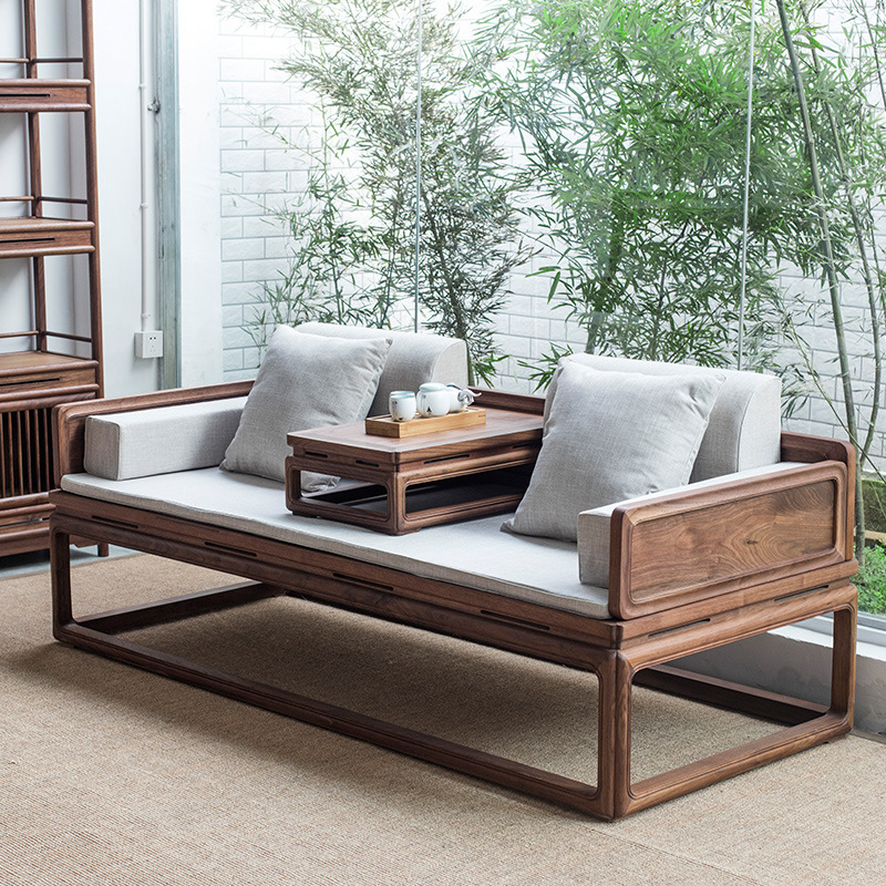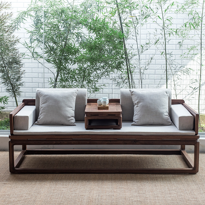Zen mới phong cách Trung Quốc không sơn cũ cây du La Hán giường Zen giải trí vẻ đẹp ghế dài cổ điển giường sofa gỗ nguyên khối