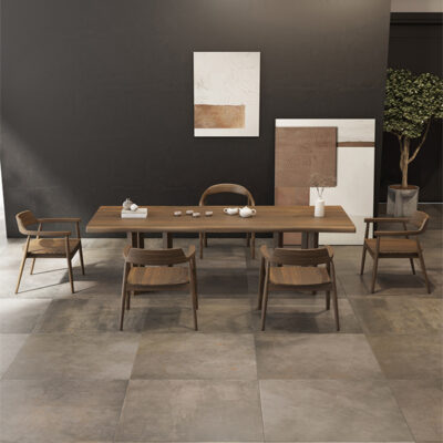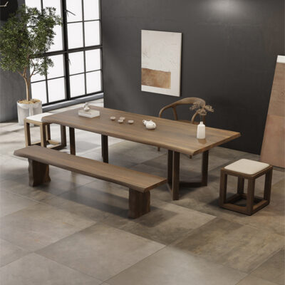 Zhaijifeng nhà ban công retro gỗ rắn Bàn trà và ghế kết hợp công ty phòng khách tiếp nhận mặt tự nhiên bảng lớn Bàn trà